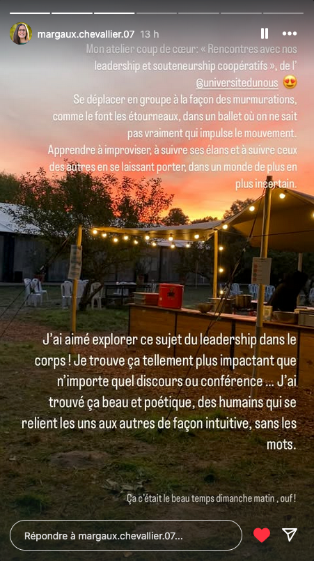 Mon atelier coup de cœur : "Rencontres avec nos leadership et souteneurship coopératifs " de l'Université du Nous.